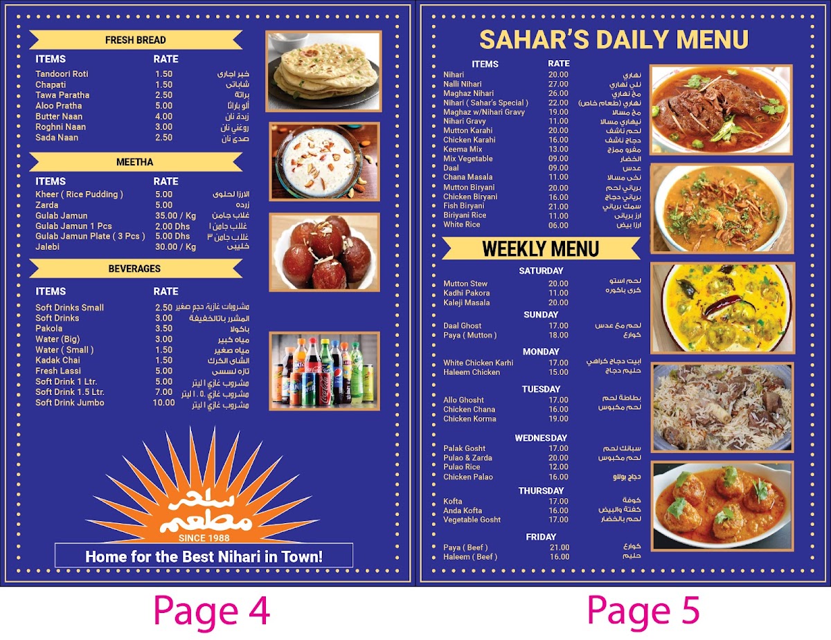 “ Love the restaurant. The food is so good it will satisfy your needs and makes you feel like you are in Pakistan. Everything is made fresh the meat is so juicy and tender the Salan and biryani is full of flavour and masala especially the famous Nihari and it’s the best you can get in Abu Dhabi, it’s top tier and very authentic the best part is that the prices are very affordable and the taste of food is so good and homely trust me before I had sahar restaurant food for a week straight and my stomach couldn’t get happier it was amazing and you won’t get bored of it this restaurant has been opened since the 90’s or even in the 80’s the quality of food has still been great. ”